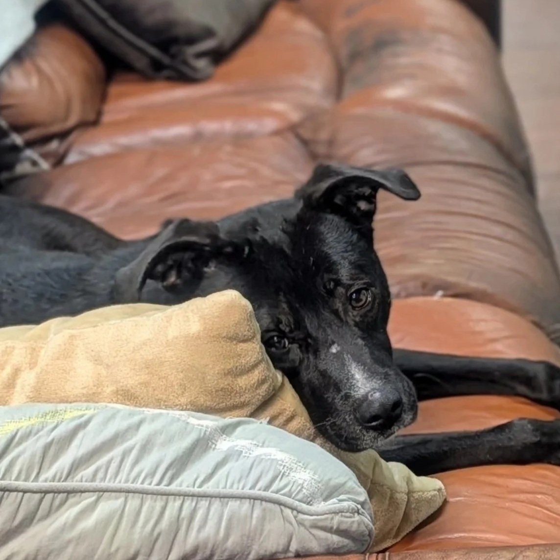 He was starving, dehydrated and full of dandruff on his dull coat. Shane has done nothing but love on all of the Forever Friends volunteers and staff at Sweet Paws. We all enjoy greeting Shane when we walk in the door!